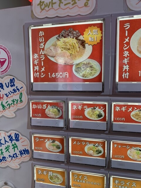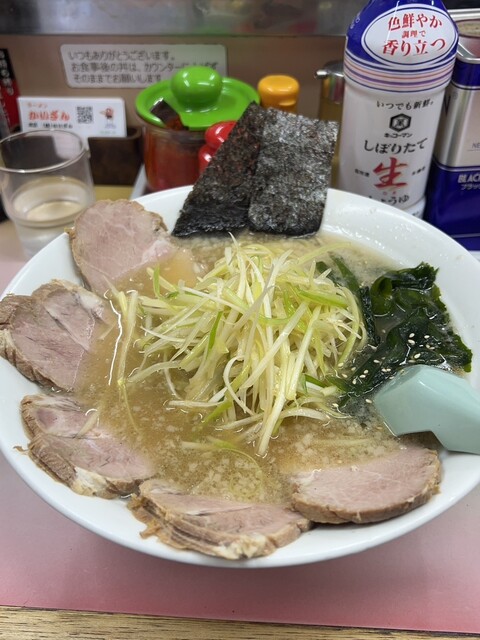 ネギはマスト。ネギチャーシューメンかかいざんラーメンがおすすめ。味のブレが激しく、美味しい時と味がスカスカな時があります。