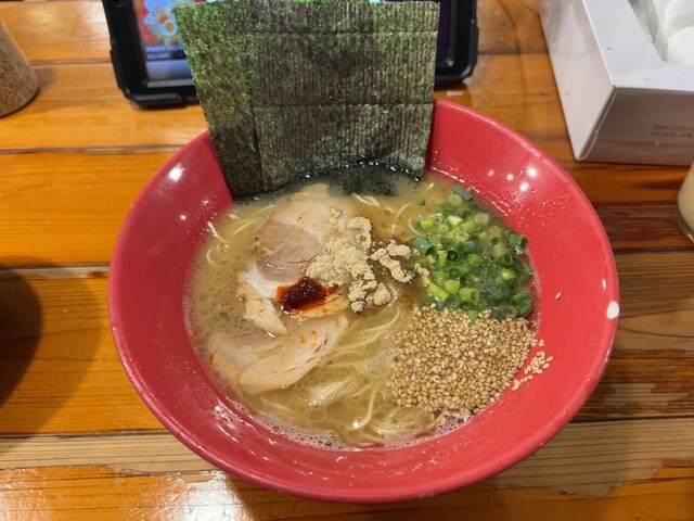 千葉のグルメを紹介するSNSで気になって訪問した同店 ラーメンは豚骨をメインに、家系や背脂チャッチャ系、味噌など種類豊富なラーメンがあり、ラーメンを頼むと、ライスか替え玉が一杯無料で、サイドメニューも一緒に頼めるハイコスパっぷり。 今回は房総豚骨ラーメンにサイドメニューの唐揚げ3つ、スー... 詳細を見る