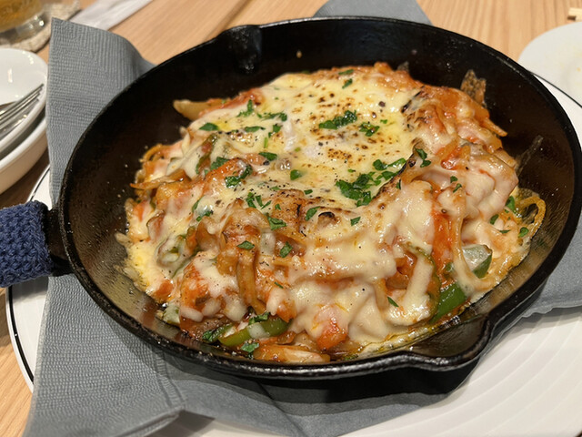 ゴハンカフェの跡地に出来たお洒落なレストランです。 妻の要望で平日ディナーに利用しました。 まず注文したのは、大きな海老とブロッコリーのアヒージョ(2人前・1000円+税) ブロッコリーが切れているとのことで、替わりにキノコを入れて頂きました。 海老は凄く大きくてプリプリで美味しい!! 海老とキノコの出汁がたっぷりのオリーブオイルにバゲットを浸して食べるのですが、これがまた凄く美味し... 詳細を見る
