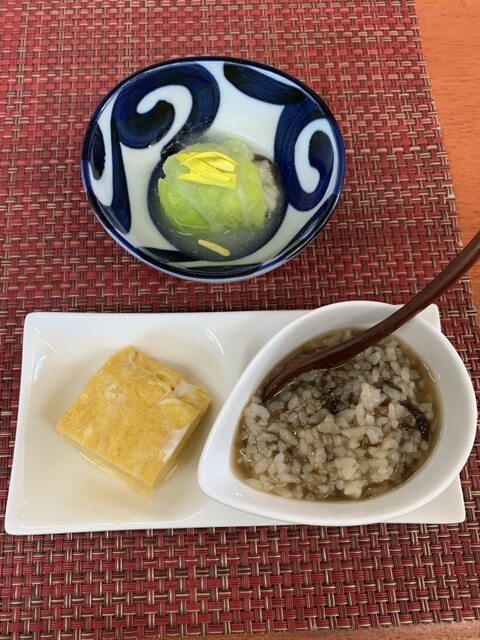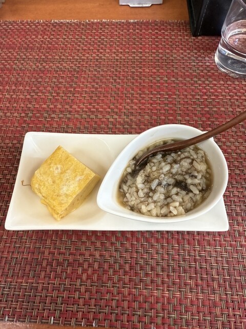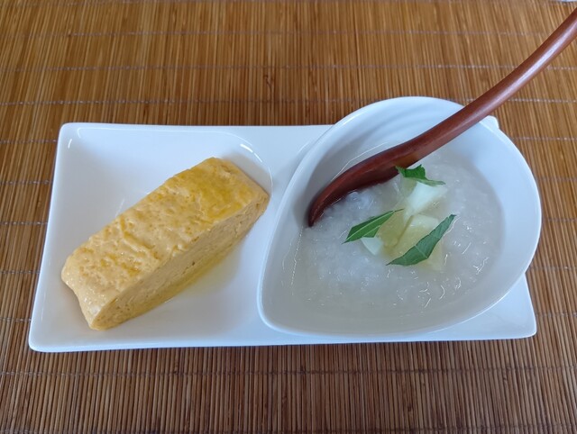 今回のモーニングは、おはぎ、麦とろ、だし巻き玉子。
