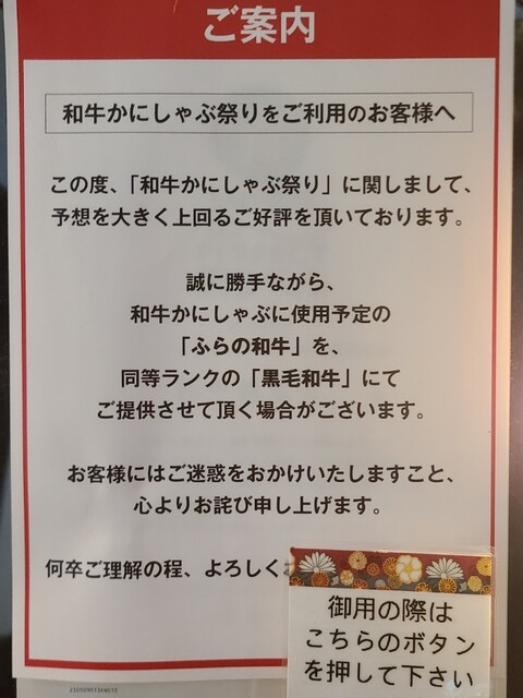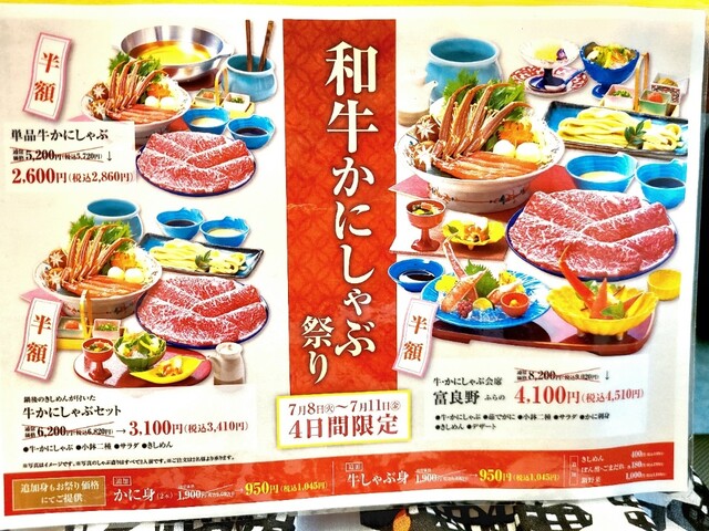 7/8~7/11の4日間限定で和牛かにしゃぶ祭りが開催されると知り早速食べログで予約をして2人で来店。