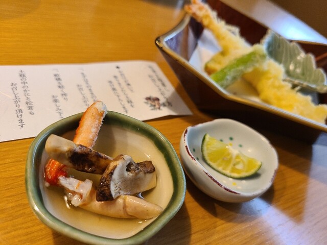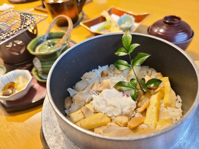 釜飯御膳の天ぷらもサクッと揚がっていて、カニの出汁が出たお味噌汁や釜飯とても美味しかったです。