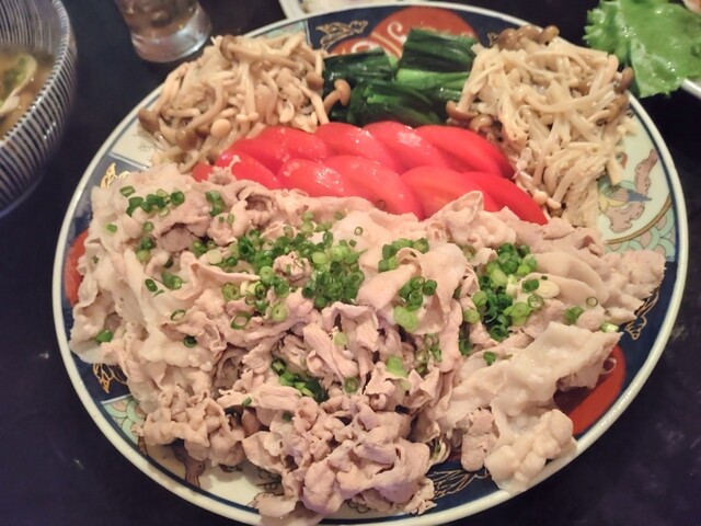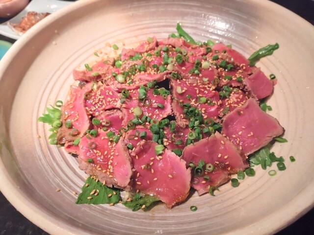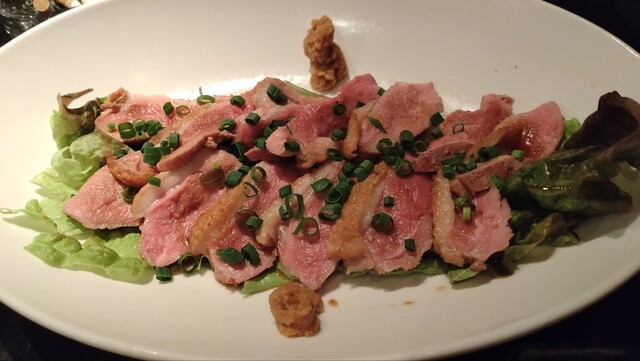 カツオのタタキ、豚肉の冷しゃぶしゃぶ、蛤の酒蒸し、いかの姿焼、ローストビーフ、茶そばとどれも大変美味しかった...