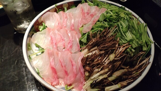 たらの芽天ぷら、生ほたるいか刺身、焼はまぐり、活皮はぎ、春のせり鍋、白子料理、海鮮料理