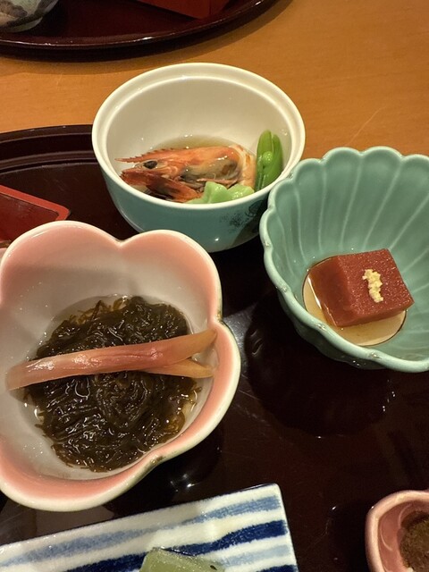 前菜から。なかなかのサイズのおぼんに小さな小鉢がズラリと並ぶ。
