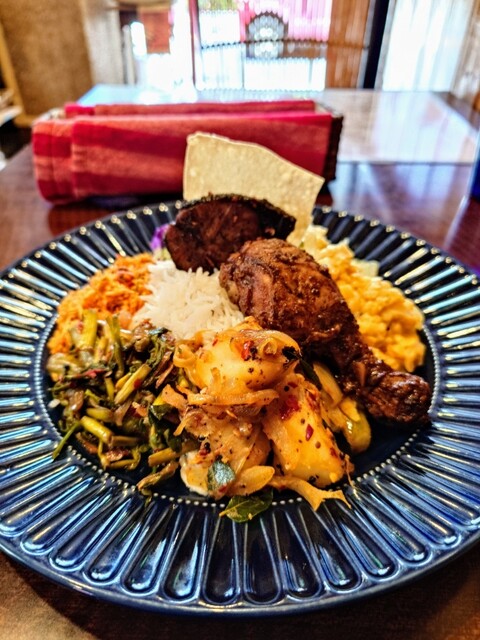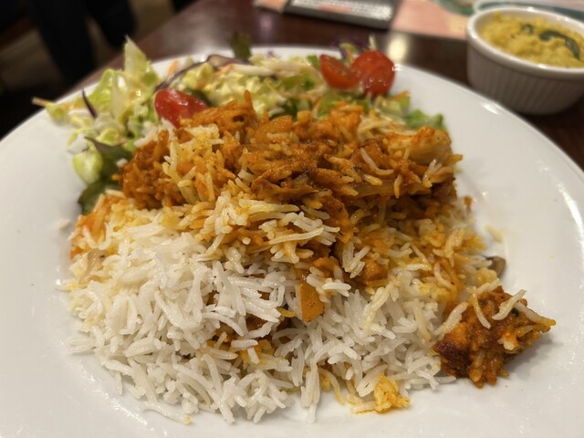 ランチに マトンビリヤニ を注文。 ビリヤニはマイブームでいくつか食べ歩いていますが、 こちらの一皿はスリランカ風。 パラっとした長粒米にスパイスがよく絡み、 見た目も... 詳細を見る