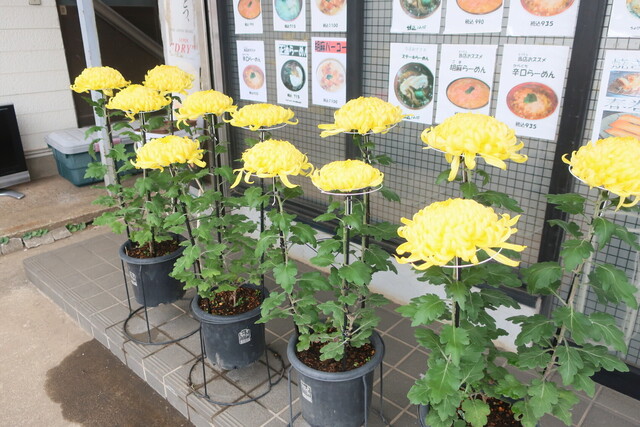 店頭で咲く菊