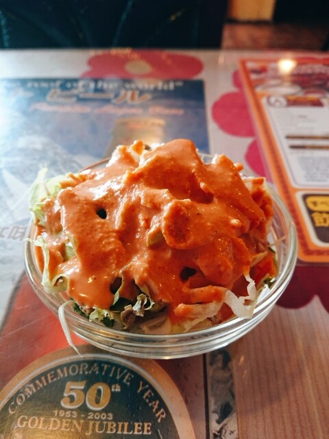 注文したら、すぐ人参ドレッシング(多分自家製?)のかかったミニサラダ到着。