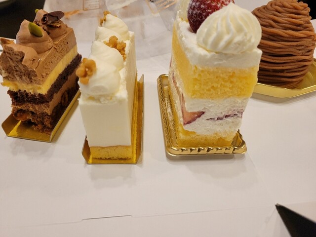 平日の19時に行きましたのでケーキは5種しか残っていませんでした、が、買って帰って大正解。好みに合いました、キレイなフォルムで丁寧なケーキ、美味しい一品でした。さらに梱包が美しかったです。みなさんの評...
