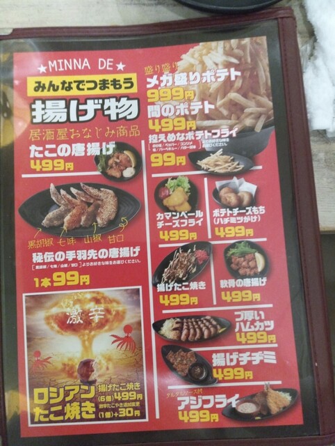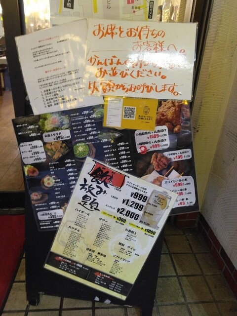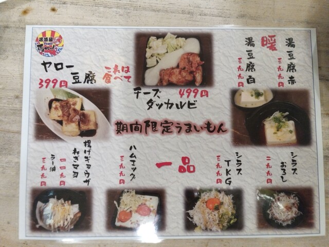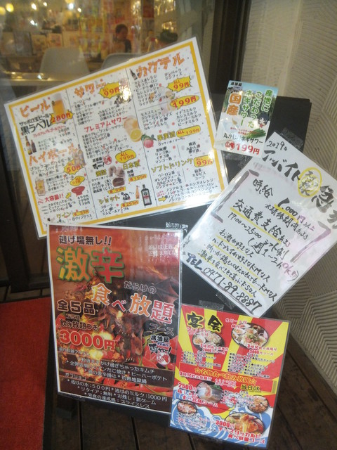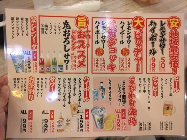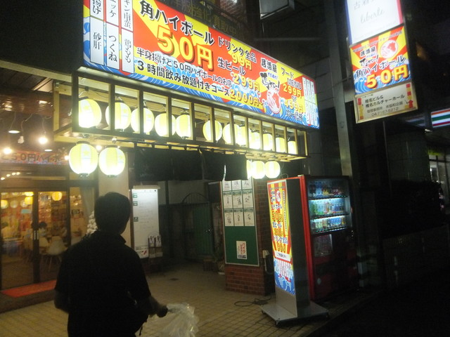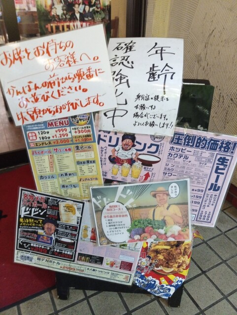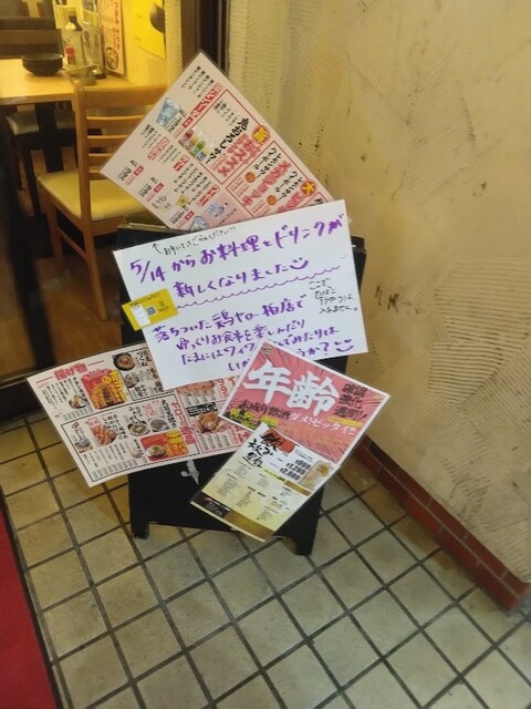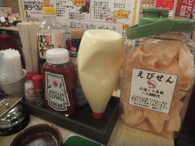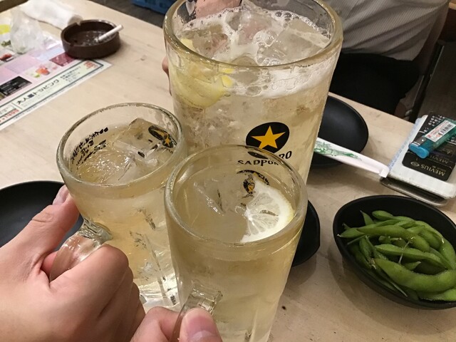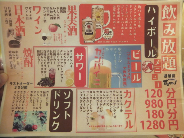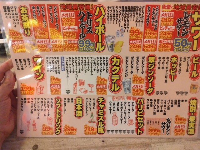奴氏が会社の健康診断の後で柏に来て、ドライブに行った帰りに利用しました。平日金曜日、18:32の来店で既に結構混雑しています。このお店、圧倒的に安いので、若いお客さんを中心にかなり混雑します。若いお客さんが多いからかかなり騒々しく、そのためか本当に若いお客さんばかりが来店して・・・我々40代のお客さんすら殆どいません。つまりアウェイな環境ではあります。