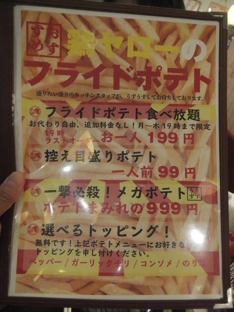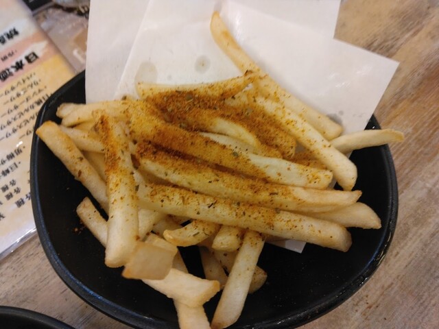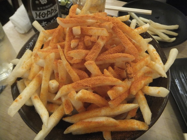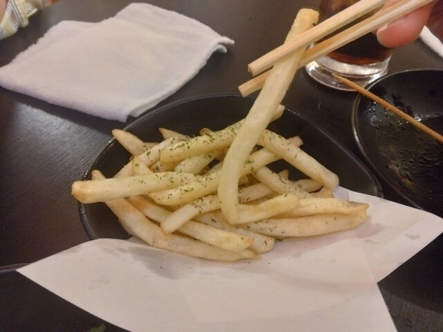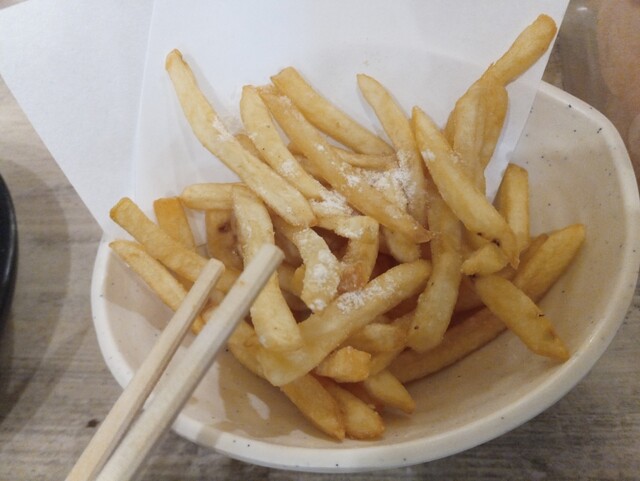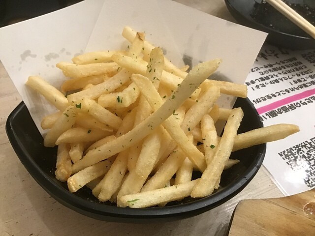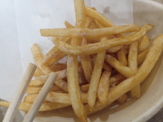 鶏ヤローさんに来たらこれを頼め!というフラッグシップなメニュー(!?)です。シューストリングタイプのフライドポテトですが、某Mドナルドさんよりもフレーバー種豊富でボリュームがあって安い!バター醤油味は鉄板の美味しさです。