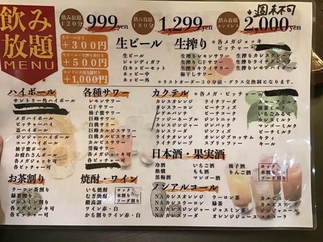 飲み放題メニュー(2018.8.27)
