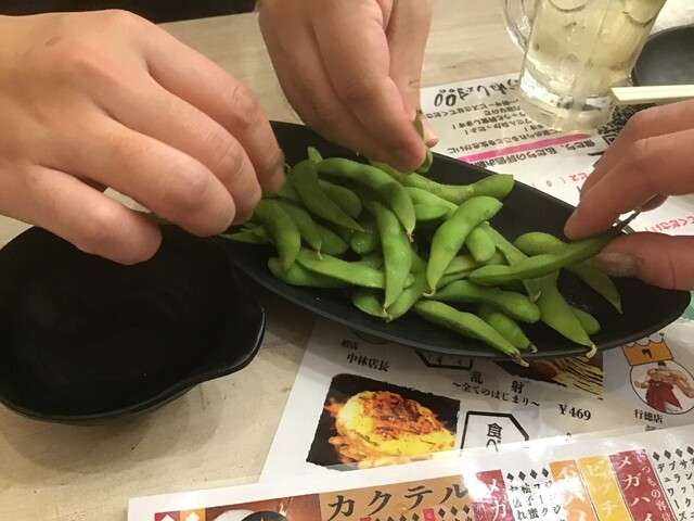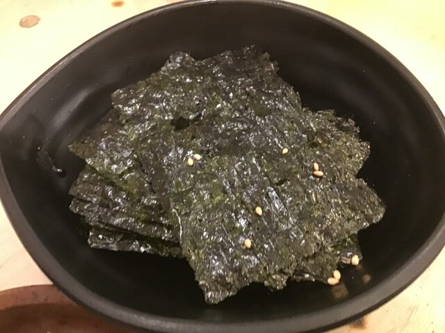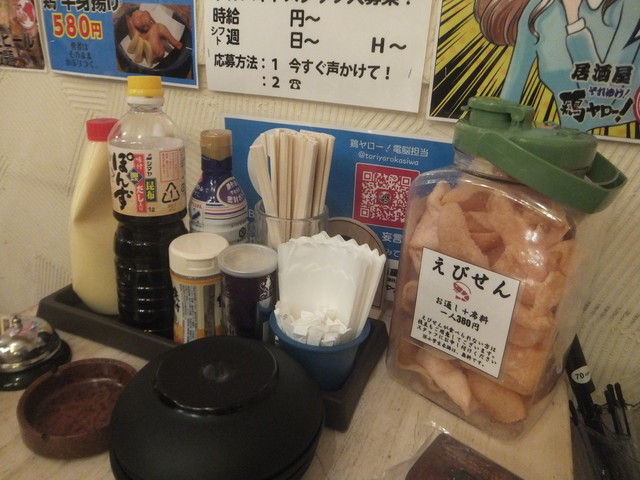 お通しは3種類くらいから選べます。えびせん以外のお通しはお代わりが出来ないので、お代わり放題なえびせんを頼みがちです。今回は最初に注文してから一回忘れられていたので登場が遅くなりました。