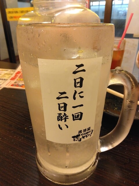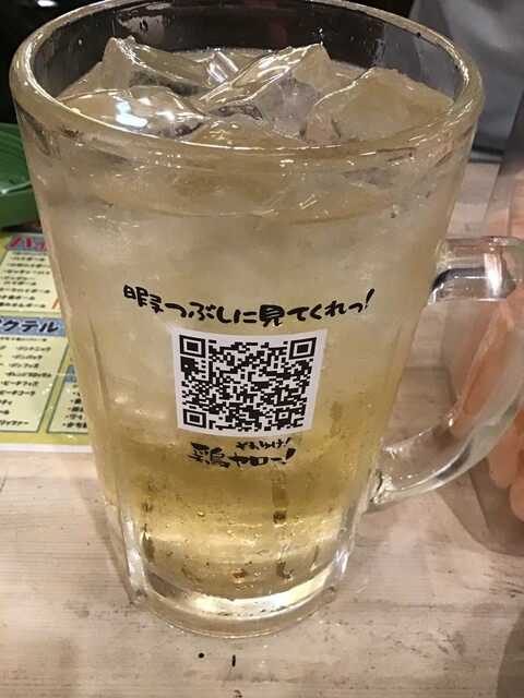 鶏ヤローさんでは一番安いドリンクです。もうこれだけ頼んでしまえばOK!何度も注文してスマホ操作を繰り返す必要も無いし、さっぱりとして美味しいし、度数が低いので沢山飲めるような気がしてしまうのも、気分が上がります(アホ)。