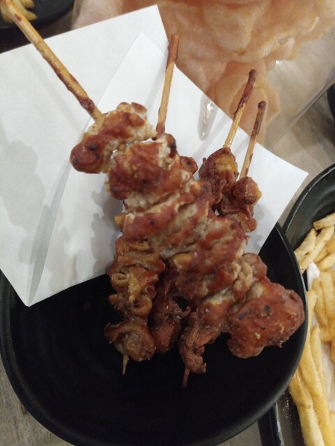スパイシー串が2本とほぼ同じ値段です。レモン付きになります。スパイシー串と味わいとしてはほぼ同じですが、んまあよりワイルドな食べ方を楽しめます。食感も大きな固体になるので多少変わります。スパイシー串と交互に頼み続けると、飽きないので良いかもしれません。