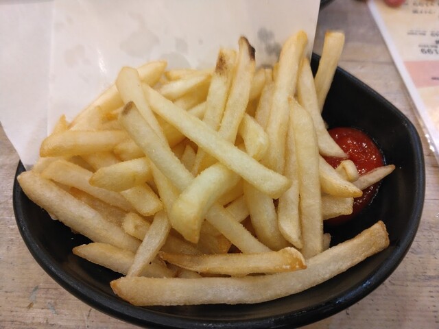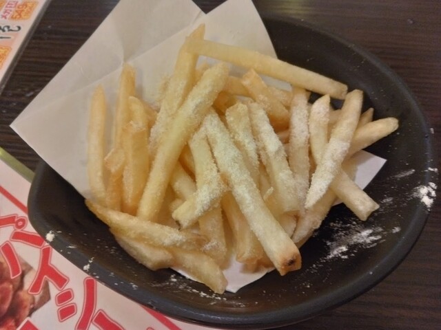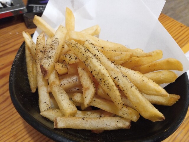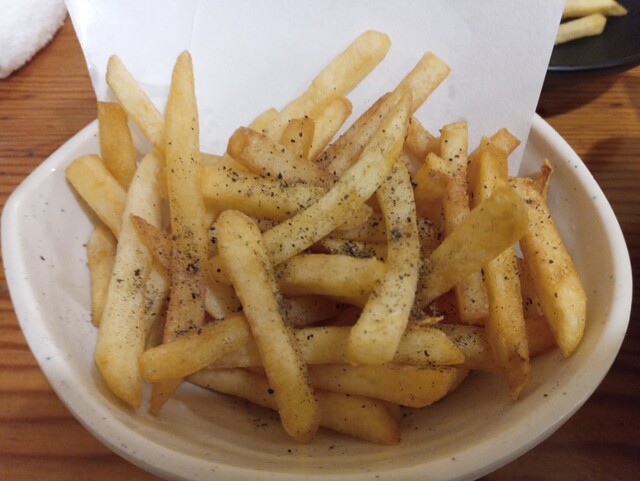 黒胡椒がパラパラっと振りかけられているだけのポテトです。ポテトは安くて美味しいですが、こちらに関してはやや玄人好みかも知れません。