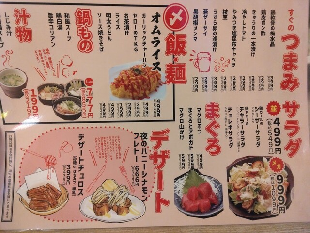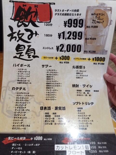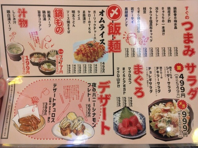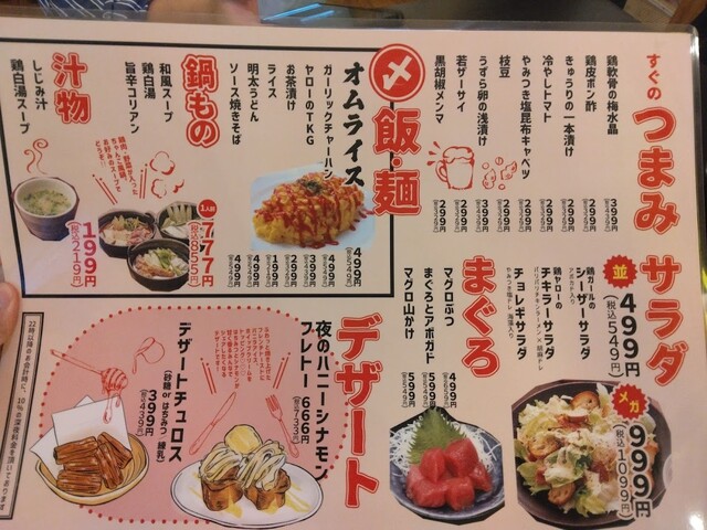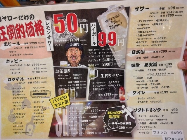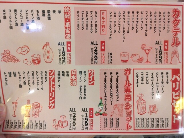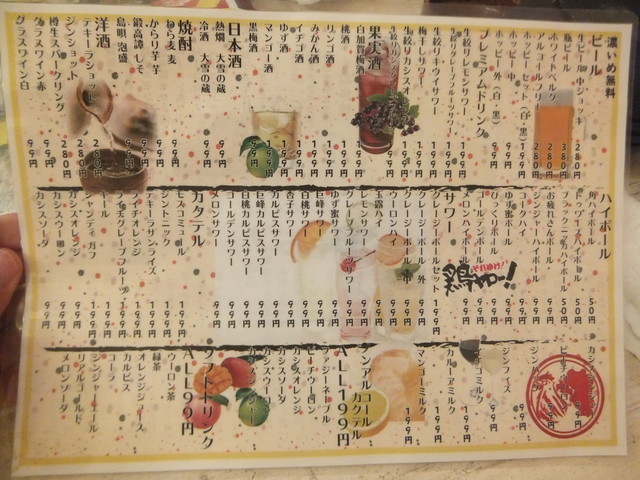 | ドリンク | 日本酒あり、焼酎あり、ワインあり、カクテルあり |