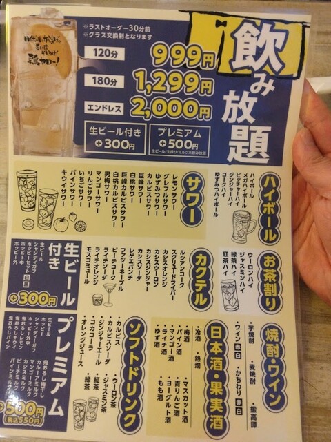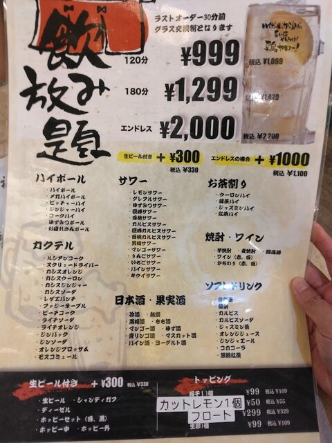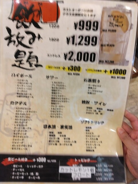 | コース | 飲み放題、3時間以上飲み放題 |
