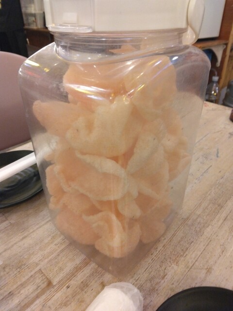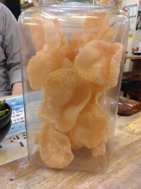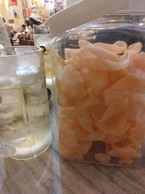 前日と同じ、お通しえびせんです。バリバリバリバリひたすら食べまくり、お替りしました。
