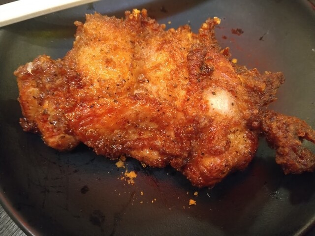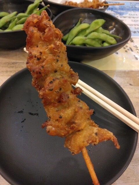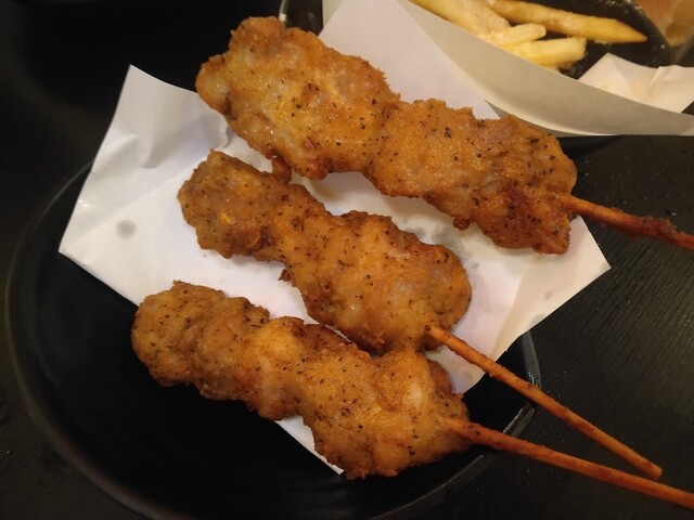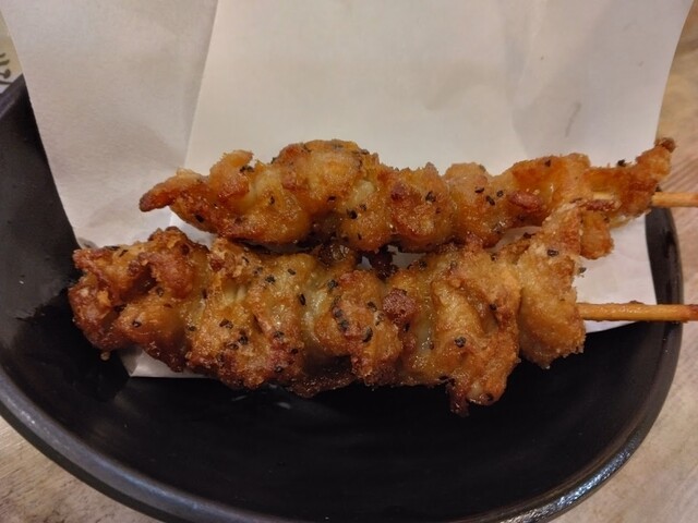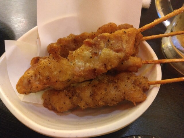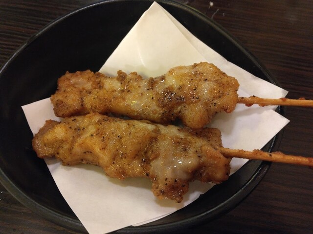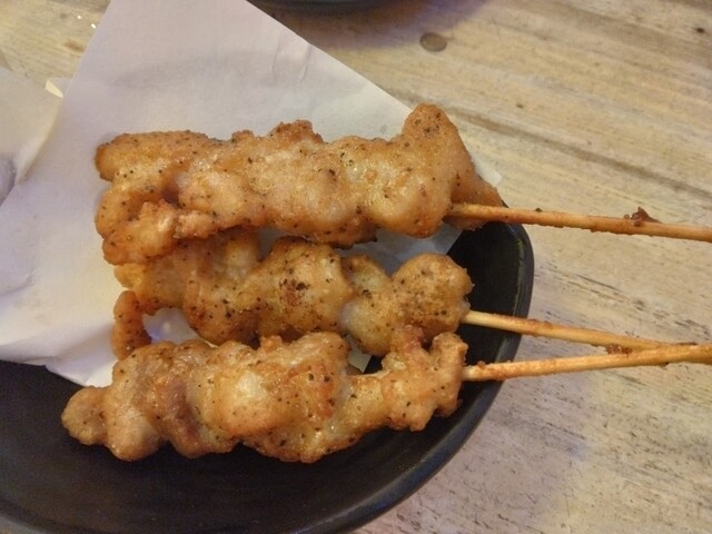 むにゅっとした柔らか鶏肉にスパイシーな黒コショウが入っています。焼き鳥というよりも柔らかいタイプのから揚げに近くて、こちらはちょっと好き嫌い出るかもしれませんが、コスパ最強です。こればっかり食べても良いくらい。
