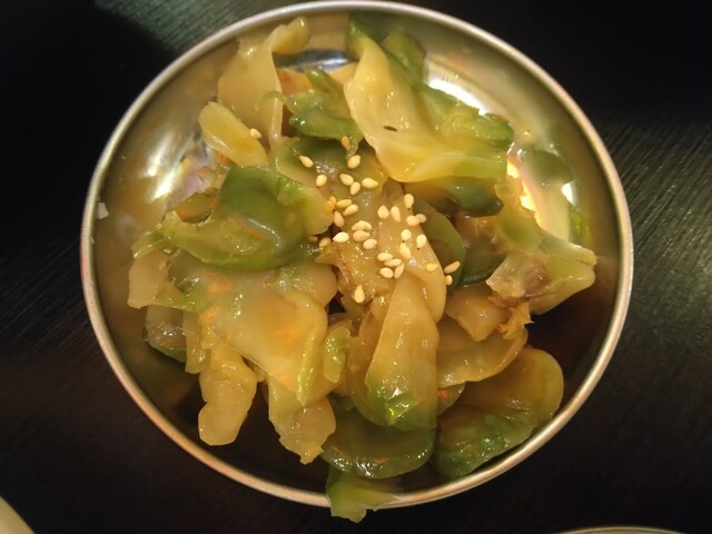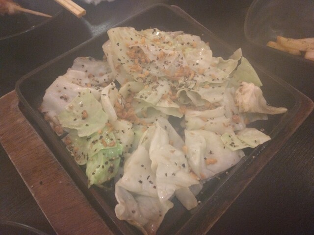 技あり!キャベツを鉄板で炒めて食べ易くして、更にあんちょび独特な塩気が加わって、唯一無二感のある逸品に仕上がっています。これを寧ろ最初に食べたかった・・・次回はそうしようと思います。