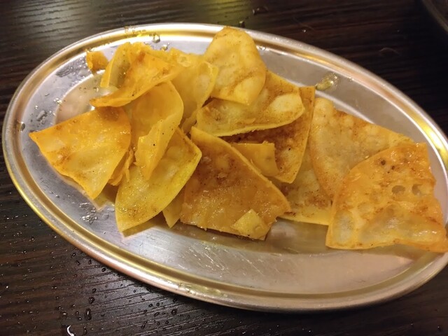 カリッと揚げたポテトチップスにカレーパウダーが掛かったひと品。カリッと軽くて、それでいておつまみとしてしっかり頂けました。毎回頼みたいメニュー・・・とまではいきませんが、良いメニューでした。