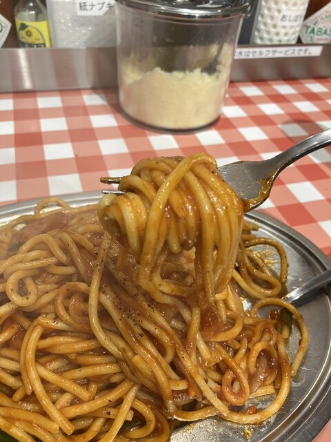 ほどよく水分を吸った麺が、”ナポリタン”ソースによく絡む。