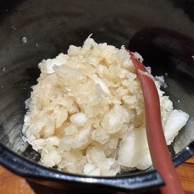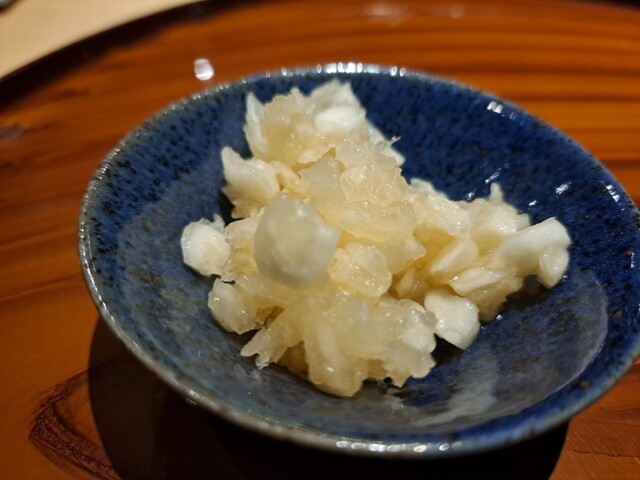 ○付きだし(鶏のたたき)