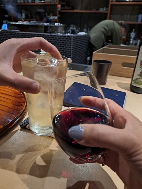 先ずはワインとハイボール(知多)で乾杯。