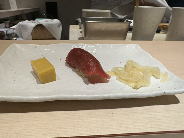つまみと握りを楽しみたくてこちらにお邪魔する。 16時という早い時間から開店しているのが嬉しい。 日本酒のラインナップも良く、スタートのおつまみも美味しいので早々に日本酒が進む進む。 そして、握りに突入~ 炙りの香ばしいイカ、マグロ、金目鯛、硬めの黒酢のシャリがサイズ感良く楽しめる。 合間... 詳細を見る