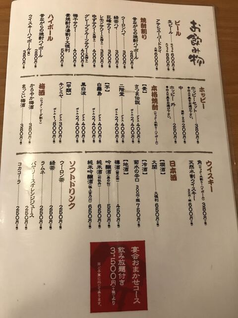 | ドリンク | 日本酒あり、焼酎あり |