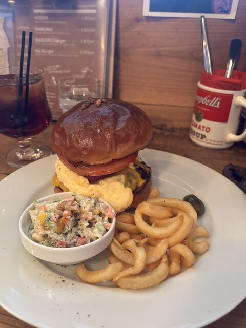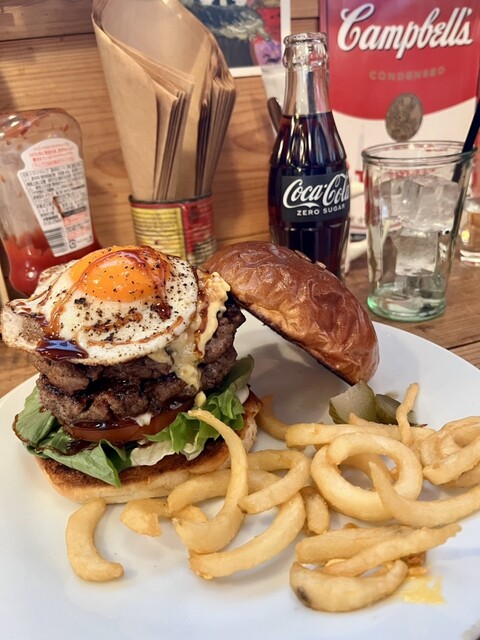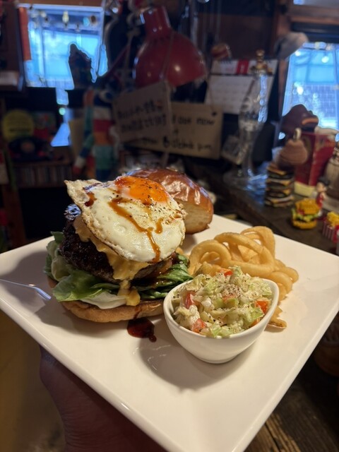 やっと行けました。こんなところに?という立地でワクワクしました。お肉ゴロゴロのハンバーガーはもちろん、セットにしてもらったドリンクやポテト、コールスローもとても美味しかったです。今度は夜メニューの時間...