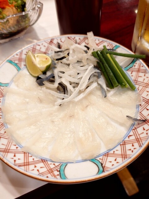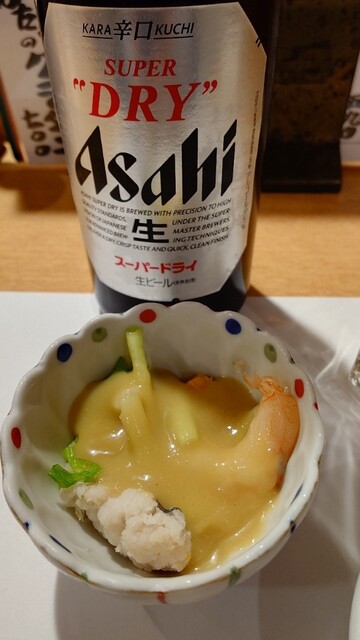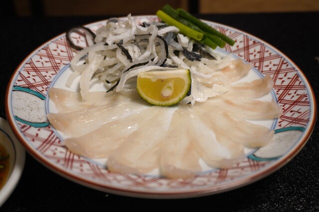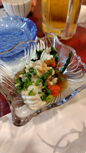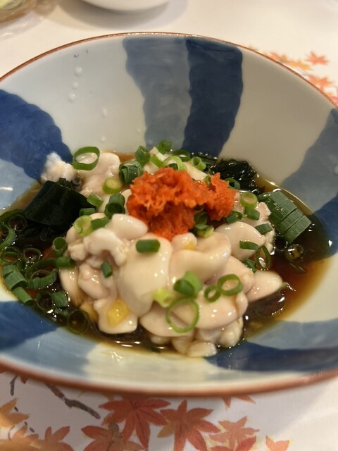 最初の料理は白子ポン酢。めちゃくちゃうまい、鮮度良し、クリーミー。