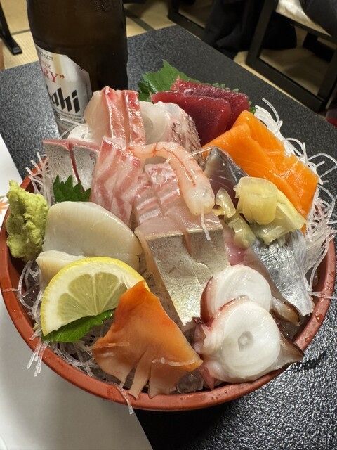 大衆割烹 大黒 松戸本店で、刺身盛り合わせ2人前と様々なおつまみを注文しました。刺身はどれも鮮度抜群で、口に入れると旨味が広がり大満足。特に旬の魚は身が締まっており、見た目にも美しく盛られていました。...