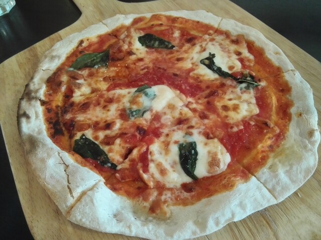 ピザ生地は薄いクリスピーなので、歯応えがよく、ソースの味を楽しめました。