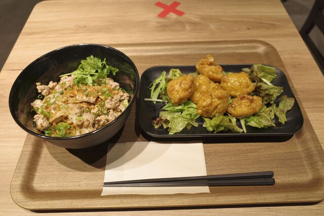 10分ほど待つと料理が出来上がるので受け取ってからテーブル席に運んで1人で食べる。