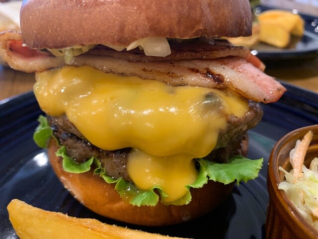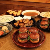 肉感あふれるグルメバーガーを楽しめる当店。店内で挽いた肩ロースともも肉を使用したパティは旨味たっぷりで、まるでステーキのようだとご好評いただいております!また、自慢のハンバーガーやおつまみ付で、飲み放題も追加OKのパーティープランは宴会にぴったり◎他、季節限定メニューやキッズメニュー、スイーツ等もございます。アメリカンビンテージ風の店内には絵本などもあり、お子様連れ大歓迎!貸切もご相談に応じます♪