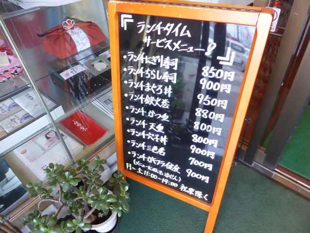 鶯色のタイルを使った意匠のビル飲食店。もちろんチェックはしてます。が、ジブンの中では寿司を食べるのには絶対に気に入るはずがないゾーンに入れている店です。目論見の店で寿司に振られたことがあって。まあ、ちらし寿司ならたとえネタがだめでもでんぶとかかまぼこでたべればいいや、って変なエクスキューズをジブンにしながら駐車場に車を入れました。おら、知らんよ。