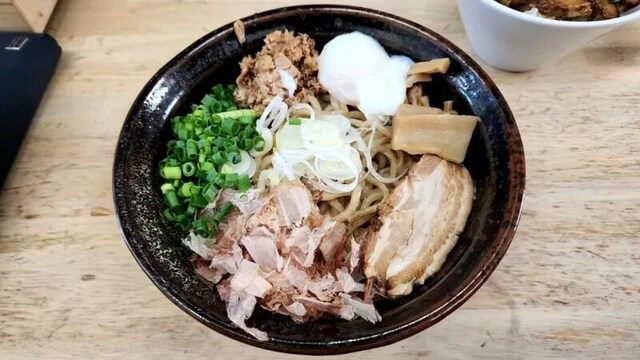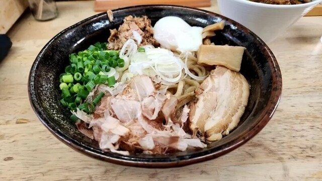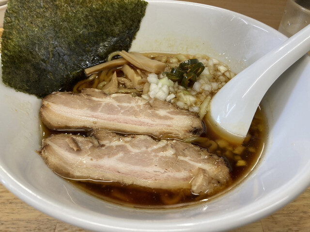 油そばが有名なお店のようだったのですが、個人的に醤油ラーメンがだいすきなので、竹岡式中華そばというメニューをいただきました。 とーっても濃厚で奥深い味わい、玉ねぎやゆずなどの香味野菜が香りよく風味も最高です。かなり濃いめの醤油なのですが、魚介や香味だしなどの効果なのでしょうか、とっても上品で奥深い... 詳細を見る