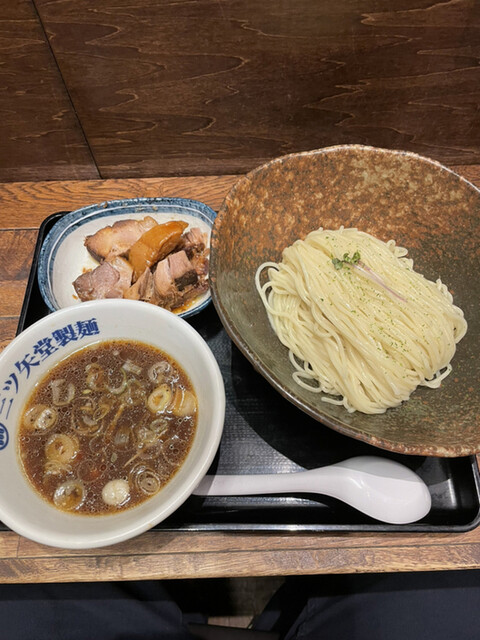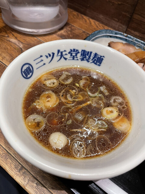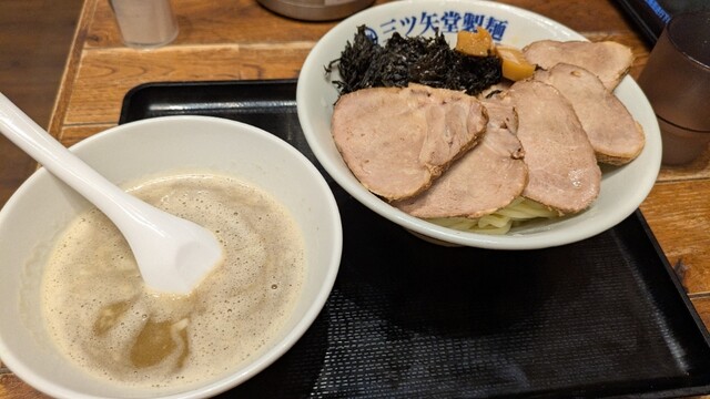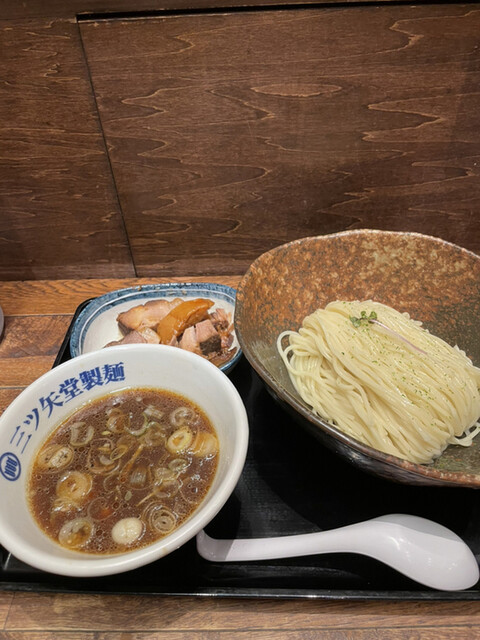 三ツ矢堂製麺と言えばつけめんがイチ推しだが、2年前はラーメンの方を食べたので、この日はかなり久しぶり(感覚としては15年ぶりぐらい)に三ツ矢堂のデフォのつけめんを食べてみようと思い入店。