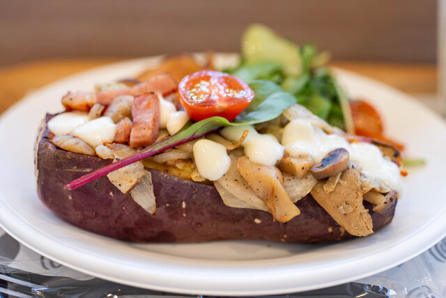 焼き芋だけでなく、スイートポテト、ポテトアップルパイ、ロールケーキ、プリンなどスイーツも充実♪流山店限定フードメニューもご用意しております!