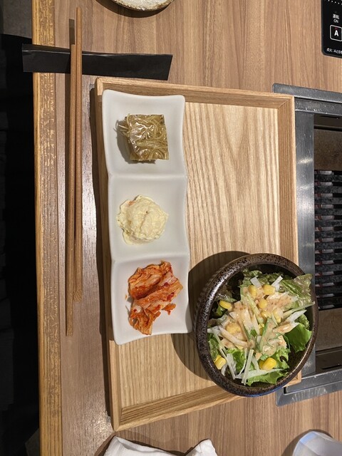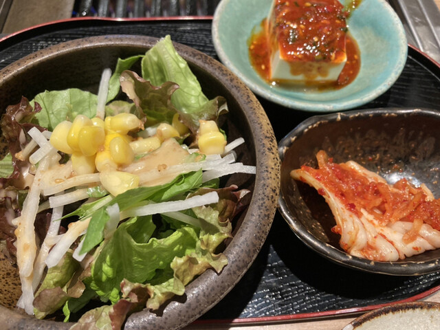 サラダはチョレギサラダを選択、その後ナムルなどの前菜が提供されます。