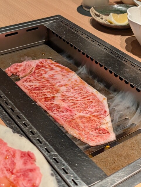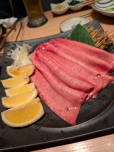 最初の肉は巨大タン。タンの色々な部位を1枚で味わえる逸品。たまりません。