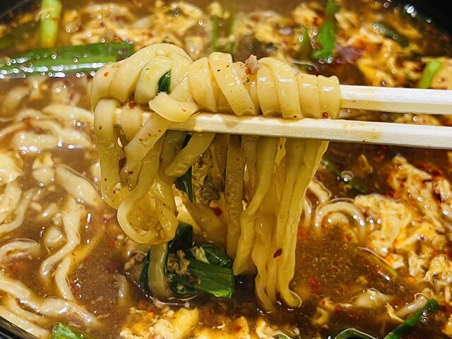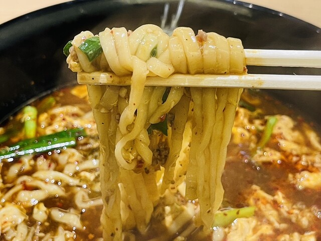 辛さ3段階選べ「普通」にしましたが、中々辛かったので、例えるならば、市販の韓国ラーメン「辛ラーメン」「ノグリラーメン」と同様の辛さです。見た目は「台湾ラーメン」です。
