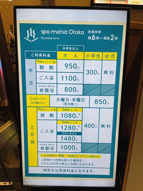 施設名:スパメッツァおおたか 竜泉寺の湯