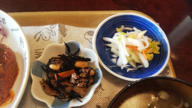 メニューは、基本的に日替り定食の一択とのこと。当日の日替りは煮込みハンバーグでした。