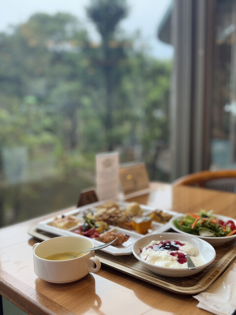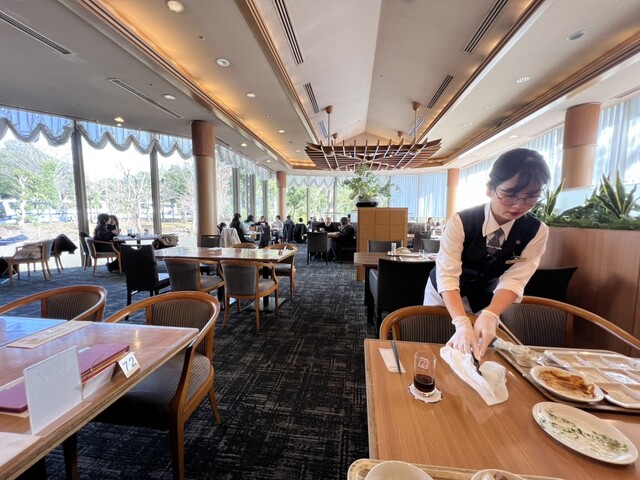 緑あふれる日本庭園を望む明るい店内で、地元の新鮮な食材を使い、素材を活かしつつ季節に合わせて、味はもちろん、見た目にも美味しいお料理の数々をビュッフェスタイルやアラカルトにてご用意しております。
