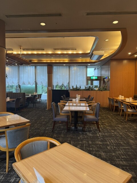 緑豊かな日本庭園と飛び立つ飛行機を望む開放感溢れる店内