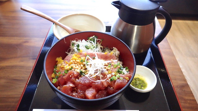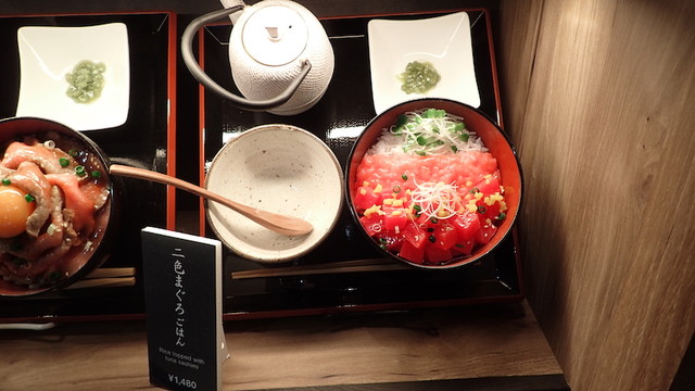 成田空港の待ち時間に利用させてもらいました。2色マグロごはんとローストビーフで3,150円。