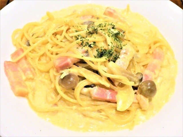 ①ベーコンとシメジのカレークリームパスタ ¥980 外税